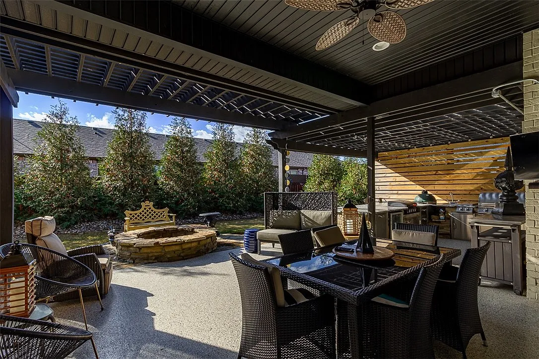 Outside, the property truly shines. The backyard is built for relaxing evenings and memorable weekends, complete with a covered patio and outdoor kitchen area ideal for entertaining.